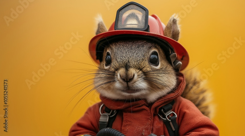 A squirrel in a fireman's suit, created with Generative AI technology.