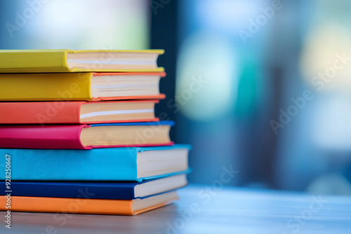 A stack of books on a blurred background, in a minimalistic concept with copy space for text or print design