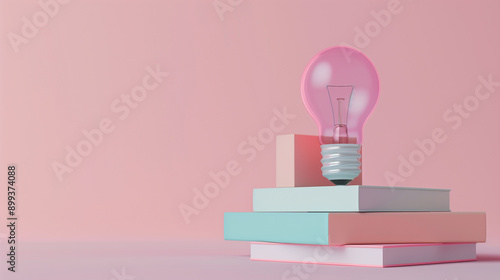 A stack of books with a light bulb on top. Concept of knowledge and learning, as the books represent the accumulation of information