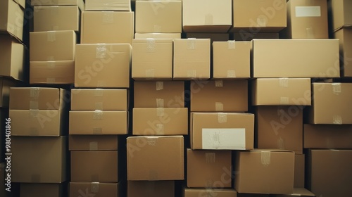 A stack of cardboard boxes piled neatly in a warehouse, ready for shipping and logistics.
