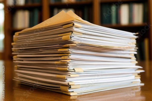 A stack of papers in a folder. This image represents the importance of paperwork and organization.