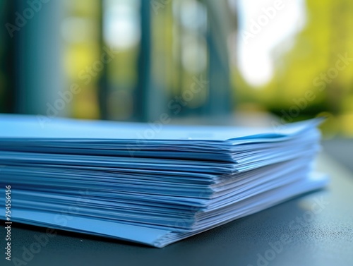 A stack of papers on a table. Generative AI.