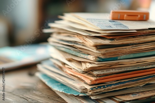 A stack of past bank statements bound together, representing financial history and record-keeping