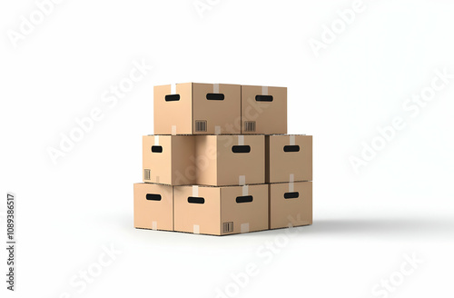 A stack of seven cardboard boxes on a white background, ready for shipping or storage.