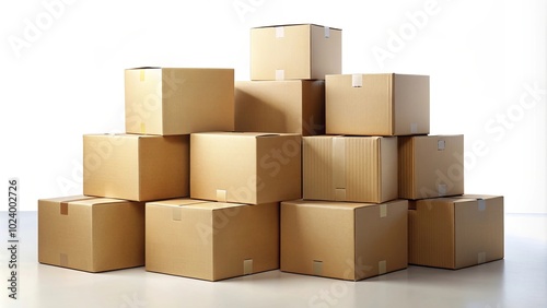 A stack of simple cardboard boxes, ready for shipping or moving, with a clean white background and natural light.