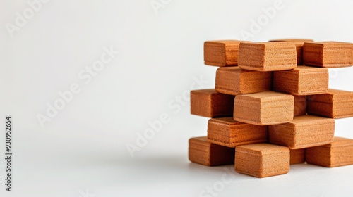A stack of wooden blocks arranged creatively on a minimalistic background, ideal for showcasing craftsmanship and design.