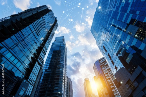 A state-of-the-art data center in China, representing the future of technology and infrastructure, Wireless signals flowing between modern city buildings, AI generated