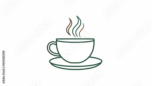 A steaming cup of coffee or tea on a saucer, a comforting beverage in a classic mug, perfect for a warm break.