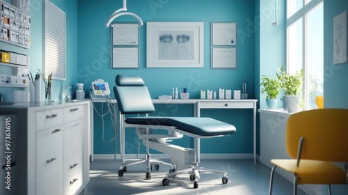 A sterile and well-lit medical examination room with an exam table and a chair in the corner, waiting for the patient.