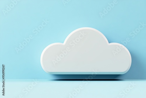 A stock illustration of 3D geometric shapes with cardboard structures and white clouds with shades on a blue background