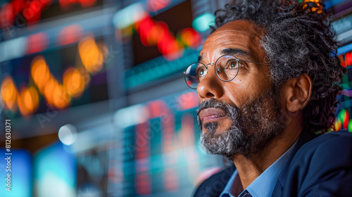 A stock market trader monitoring fluctuations on multiple screens.