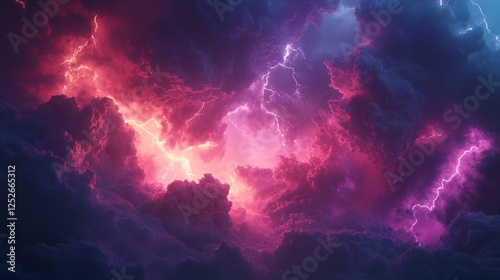 a storm light with a mix of purple, pink, blue and red mists on an abstract technology dark background