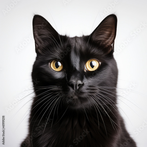 A straight face of a black cat used as a decoration on Black Cat Appreciation Day,ai generative.