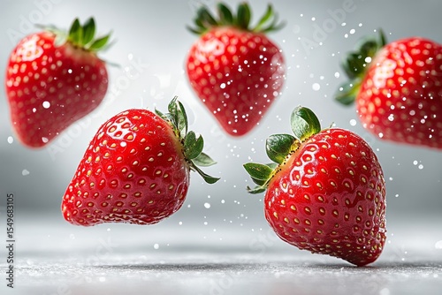 A strawberries flying in the air. Generative AI