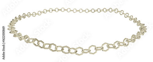 A striking 3D render of a golden circular frame crafted with a mix of intricate geometric and classic round chain links. Ideal for luxury or unique design.