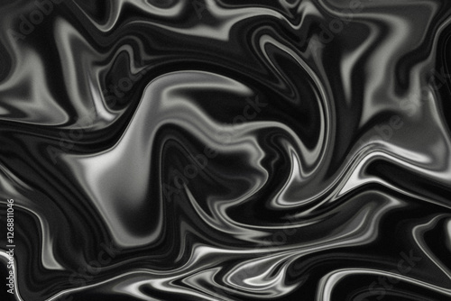 a striking abstract artwork that features intricate, flowing patterns of black and white, evoking the smooth texture of polished marble or liquid metal.