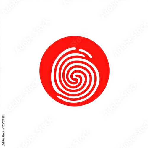 A striking abstract design featuring a white fingerprint pattern on a vibrant red circle.