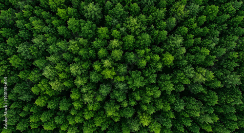 A striking aerial shot of a vast, green forest canopy, capturing its intricate details.