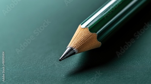 A striking close-up of a perfectly sharpened green pencil on a green surface, capturing the simplicity and precision of traditional artistic tools and creative potential.