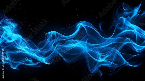 A striking image of electric blue smoke twisting and curling against a stark black background, creating a dynamic and high-energy visual effect.