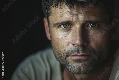 a striking portrait of a man, capturing the essence of character and emotion through expressive features and a compelling gaze
