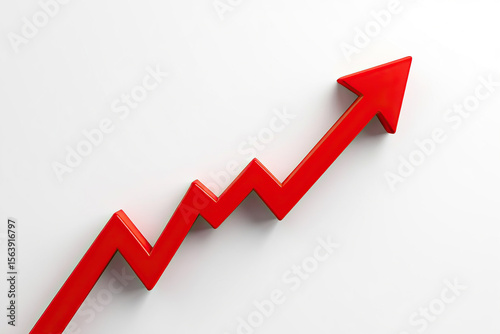 A Striking Red Arrow Ascending Against a Clean White Backdrop, Representing a Zigzagging Path to Success, Growth, and the Overcoming of Challenges in Business and Life