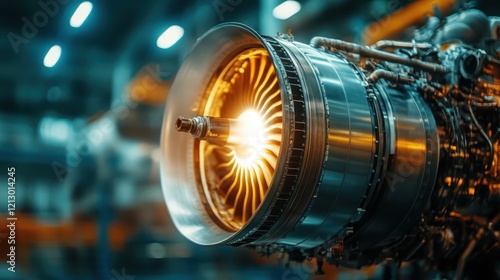 A striking view of an engine turbine with sparks emanating, showcasing the power and technology behind modern engineering in an industrial environment.