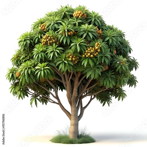 A stunning 3D illustration of a Mammea americana tree. showcasing its lush green foliage and ripe yellow fruits.