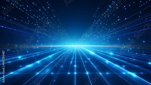 A stunning abstract background showcasing vibrant blue light trails converging towards a bright horizon, symbolizing speed and innovation.