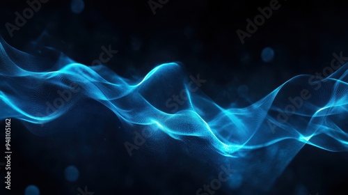 A stunning blue wave of light flows gracefully through a dark background, creating a serene and ethereal atmosphere.