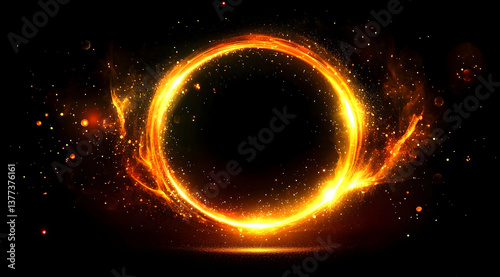 A stunning circular fiery design radiating light and energy against a dark background, perfect for creative projects and visual impact.