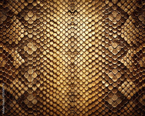 A stunning display of golden snake skin features intricately arranged scales that glimmer with a warm hue, showcasing the beauty of nature's artistry and complexity