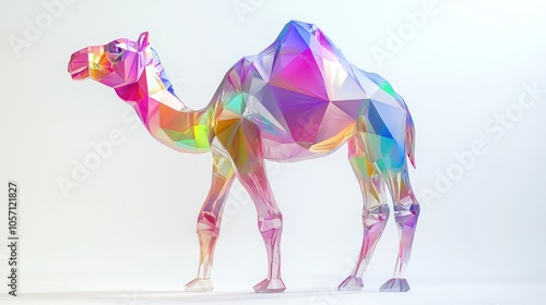 A stunning, futuristic camel adorned with vibrant, iridescent patterns reflecting the concept of quantum energy.