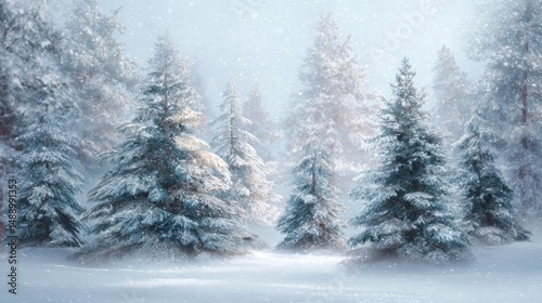 A stunning image of snowy Winter Forest Tabletop Background.