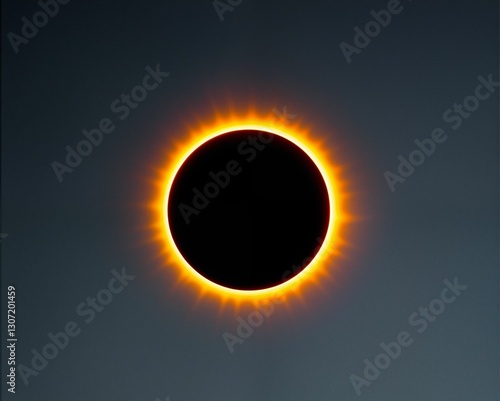 A stunning solar eclipse captured, showcasing a darkened sun surrounded by a bright corona against a clear sky.