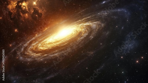 A stunning spiral galaxy glowing with bright stars and cosmic dust in the universe.