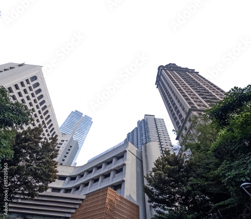 A stunning view of a skyscraper against a clear blue sky, captured from a low angle, showcasing the architectural magnificence and modern urban design.