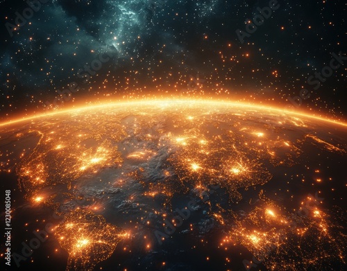 A Stunning View of Earth from Space Highlighting City Lights and Natural Wonders with Vibrant Colors and a Starry Background