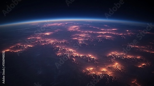 A stunning view of Earth from space, showcasing glowing landscapes and atmospheric layers.