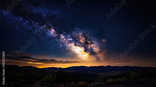 A stunning view of the Milky Way galaxy illuminating a night sky over mountains.