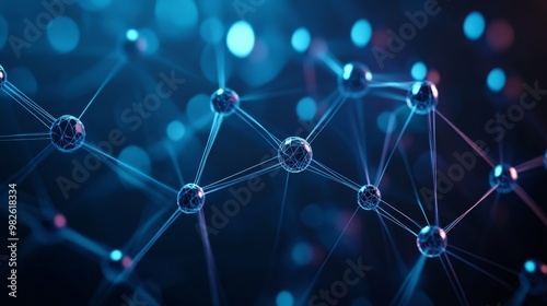 A stunning visualization of molecular structures with vibrant blue and purple tones, perfect for science and technology themes.