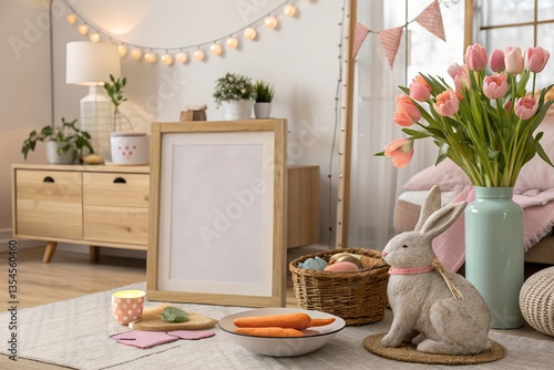 A styled bedroom view with a balanced mix of earthy tones, a textured blue headboard, and soft textiles, creating a cozy and inviting atmosphere