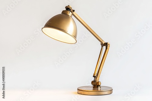 A stylish brass desk lamp with an adjustable arm, providing focused illumination.