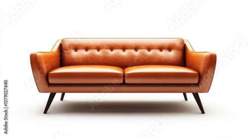 A stylish leather sofa with a sleek look, isolated on a clean white background with room for text