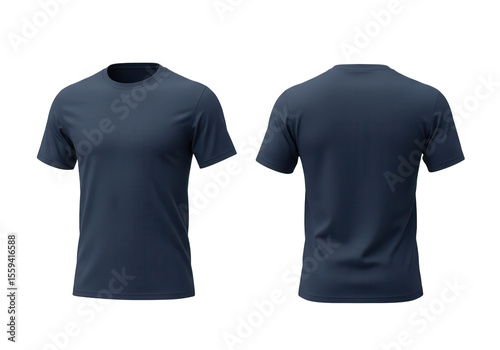 A stylish navy blue tshirt, presented in front and back views, isolated on transparent background