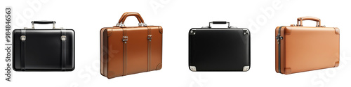 A stylish showcase of four different briefcases in black and brown hues, highlighting modern and classic designs against a dark background.