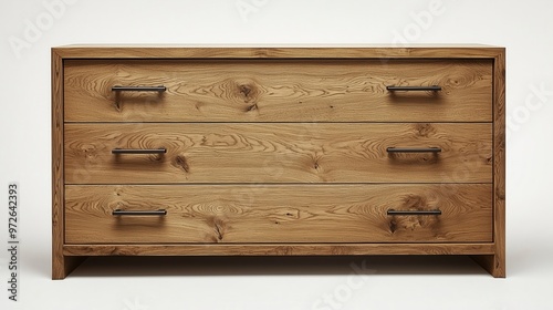 A stylish wooden dresser with three spacious drawers, perfect for organizing clothes and enhancing home decor.