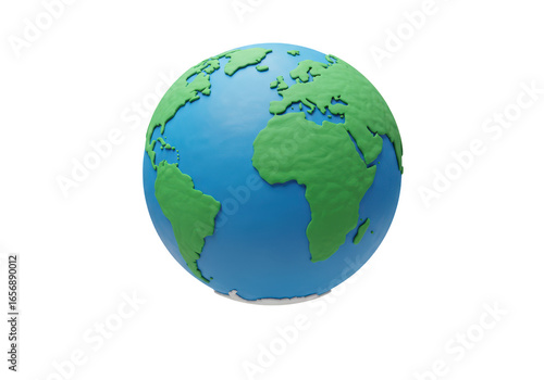 A stylized 3d globe showing continents and oceans, isolated on transparent background
