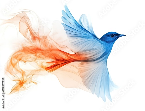 A stylized bird in flight, embodied by vibrant smoke-like colors
