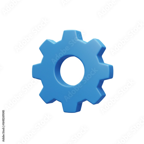 A stylized blue gear symbol representing settings or configuration options floats with a simple modern aesthetic for digital design.